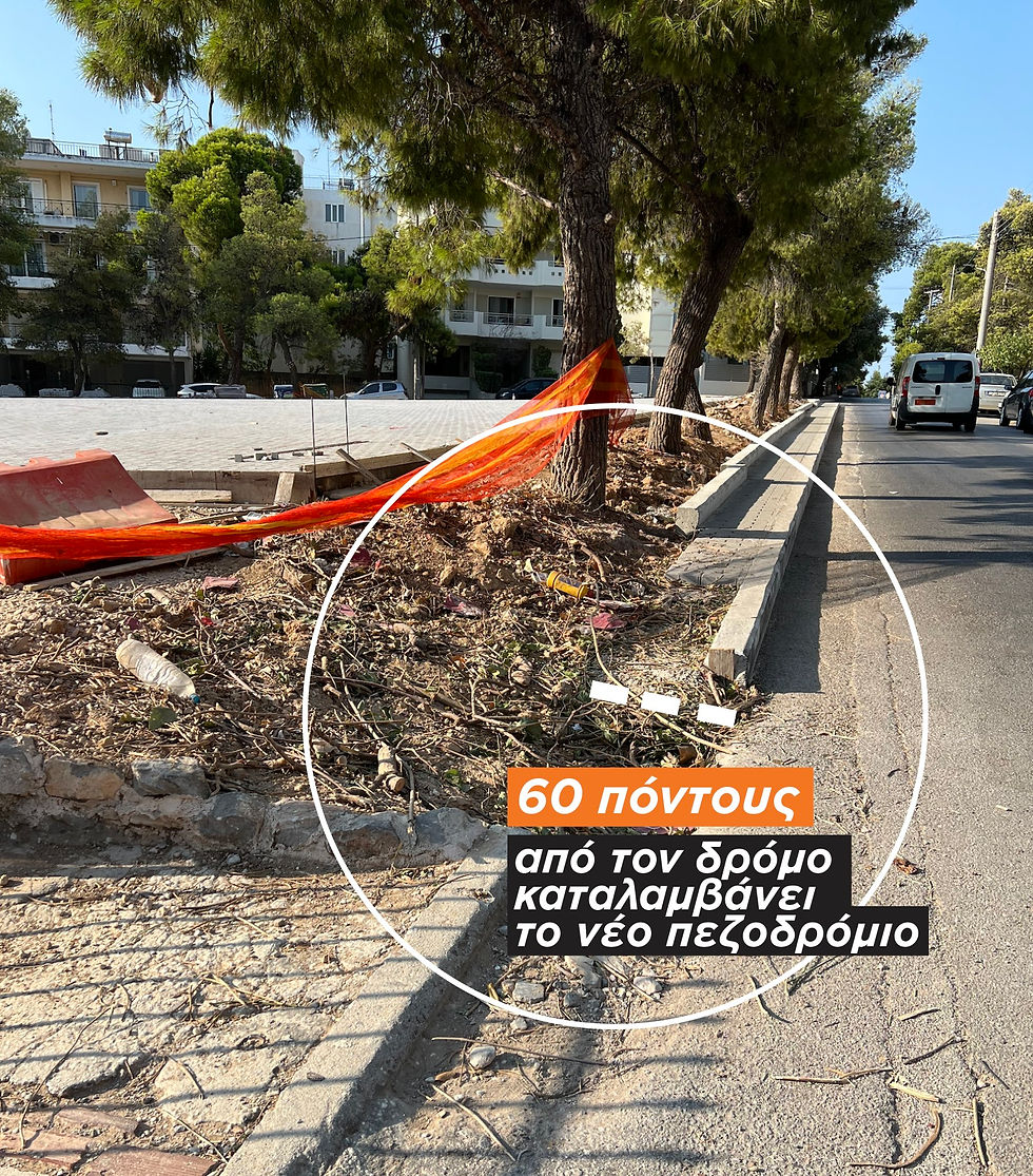 Στο συγκεκριμένο ρεπορτάζ λοιπόν όπως μπορείτε να δείτε παραπάνω, η κατασκευή του πεζοδρομίου που πραγματοποιείται, μοιάζει να είναι ήδη προβληματική καθώς όπως παρατηρείται εύστοχα "λόγω των δέντρων κατασκευάστηκε πιο έξω το πεζοδρόμιο" και σε κάθε περίπτωση δεν τηρεί τις προδιαγραφές που πρέπει να υπάρχουν από τον νόμο 52907/2009 και αναφέρονται στο δημοσίευμα.
